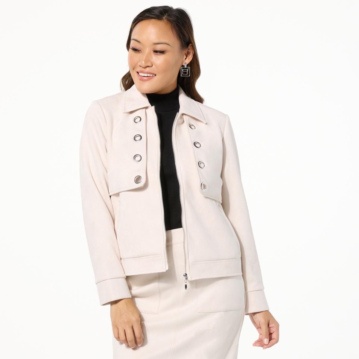 Make a stunning style statement without saying a word. This luxurious faux suede cropped jacket from GREY by Jhoan Sebastian creates the perfect balance of modern styling and timeless detail so you can wear it from workday to weekend with confidence.