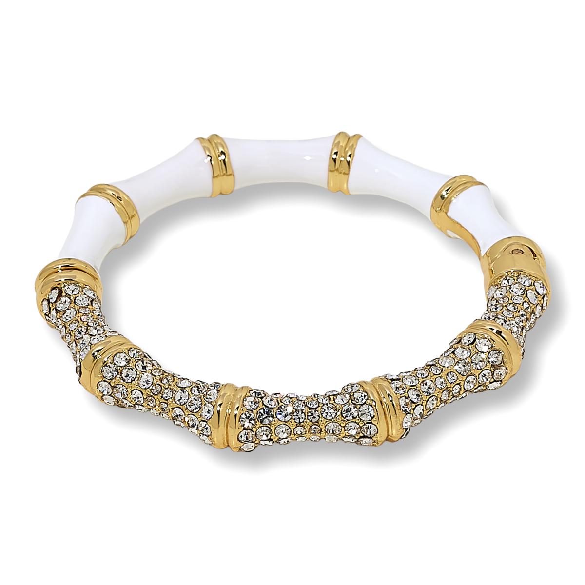 - White enamel "bamboo-look" bangle bracelet embellished with goldtone accents on half of the bracelet