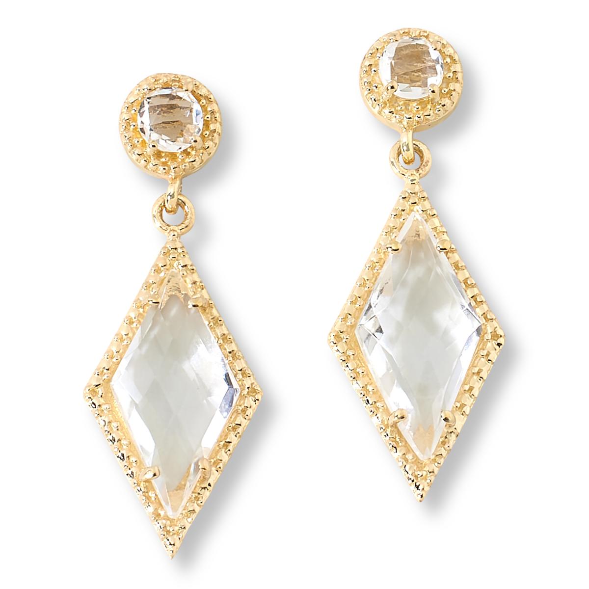Elegant earrings crafted from your choice of fancy-cut Herkimer "diamond" quartz drops and embellished with textured, goldtone sterling silver, are sure to add a touch of chic, sophistication to any ensemble. Choose Diamond-cut, Marquise, Triangle or Elongated Emerald.