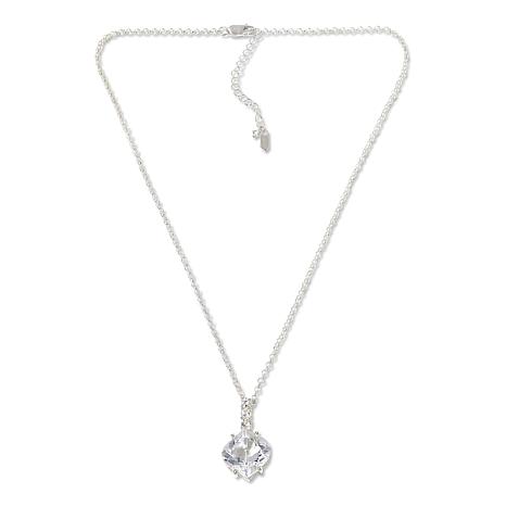 Adonrn your neckline with a unique, new cut of Herkimer "diamond" quartz from Herkimer Mines. This pretty pendant features a rhombus-shape or "Rhozen-cut" solitaire topped with three round stones, all with the spectacular, sparkle you love.