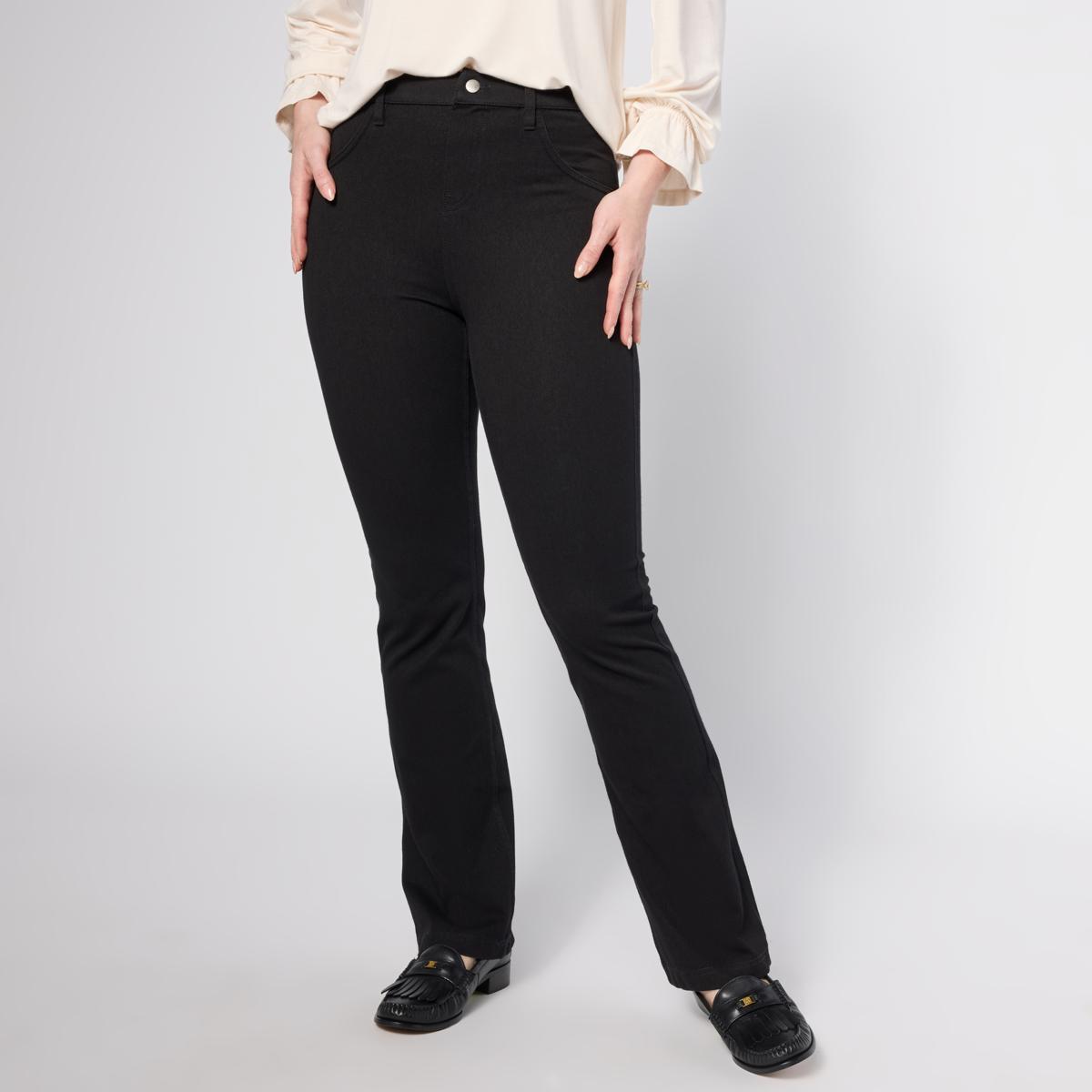 Get effortless, game-changing style when wearing these stretch denim twill knit pants. Featuring Hue's signature pull-on jean styling and a leg-lengthening baby bootcut leg shape, it has that classic denim skinny jean look with the comfort of your favorite leggings.