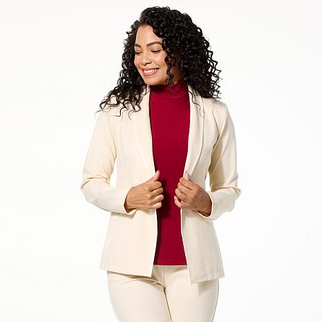 "As Is" IMAN Global Chic Ponte Blazer with Faux Leather Trim