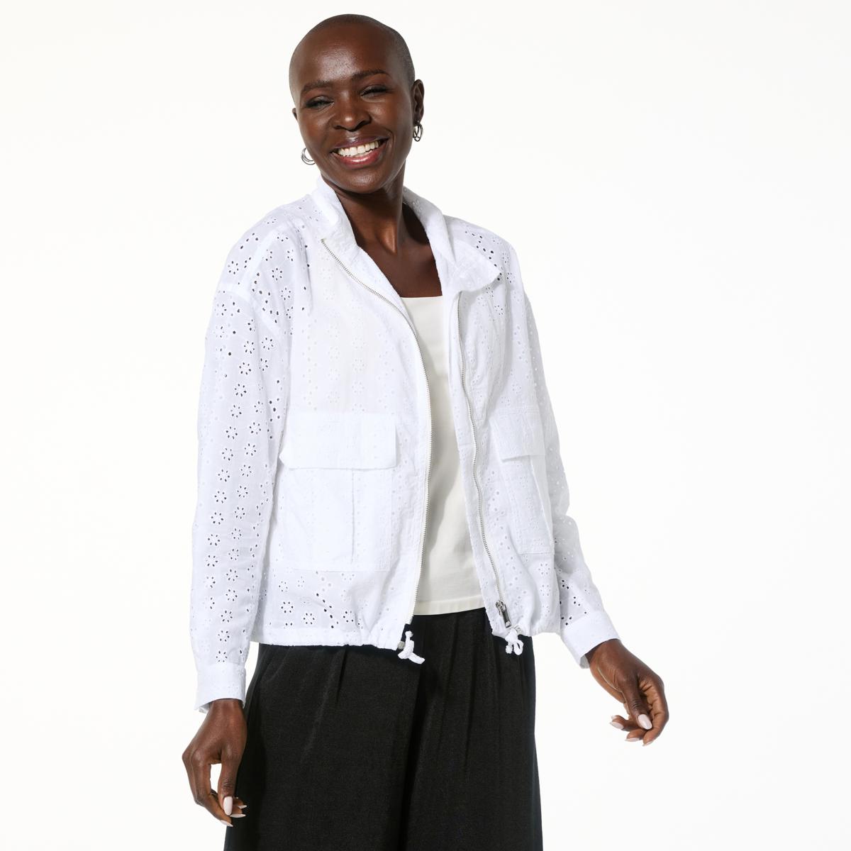 "As Is" Jaclyn Smith Eyelet Zip-Front Cargo Jacket