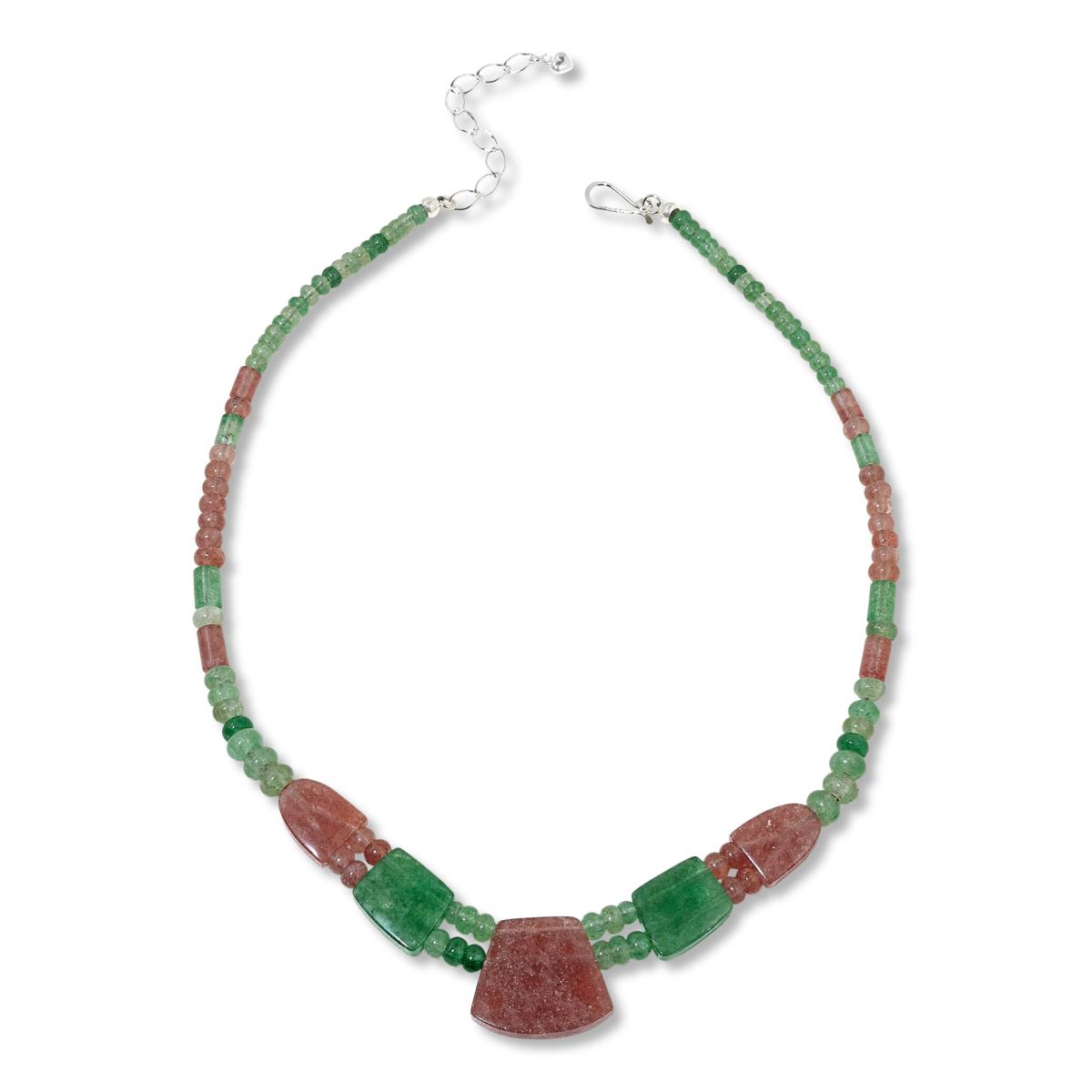Pretty pink and green "strawberry" quartz from Brazil displays a subtle, mottled color pattern that makes this handcrafted necklace design a beautiful addition to any accessories collection. From Jay King.