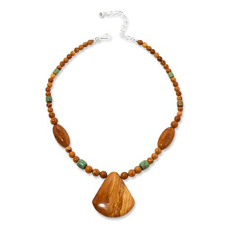 This beautiful, handcrafted necklace combines golden-colored Peach Mountain Chalcedony with Sacred Cloud Mountain turquoise accents in a chic, stylish necklace design that's sure to set you apart from the crowd! From Jay King.