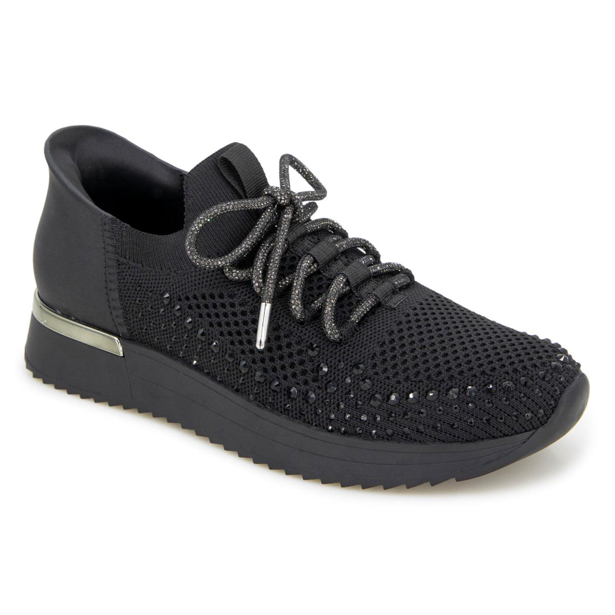 Slip right into this knit jeweled jogger sneaker from Kenneth Cole Reaction. This easy-on design will have you out the door in minutes and dazzling throughout the day with its jeweled faux laces and accents.