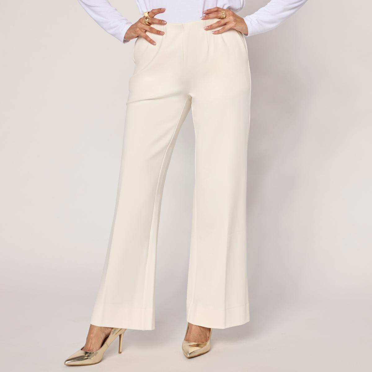 These straight leg pants are designed with darts for a flattering fit that contours your waist and hips. The clean finished elastic waistband ensures comfort without gathering, while slash pockets add practical style. Perfect for work or weekend, these pants offer ease of movement and a polished look that pairs well with your favorite tops and shoes.