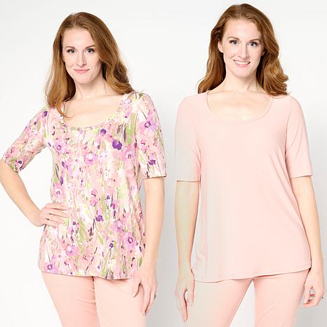 Nina Leonard 2 PACK Elbow Sleeve Scoop Neck Tops
