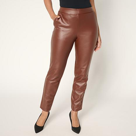 "As Is" Nina Leonard Elastic Waist Faux Leather Narrow Pant