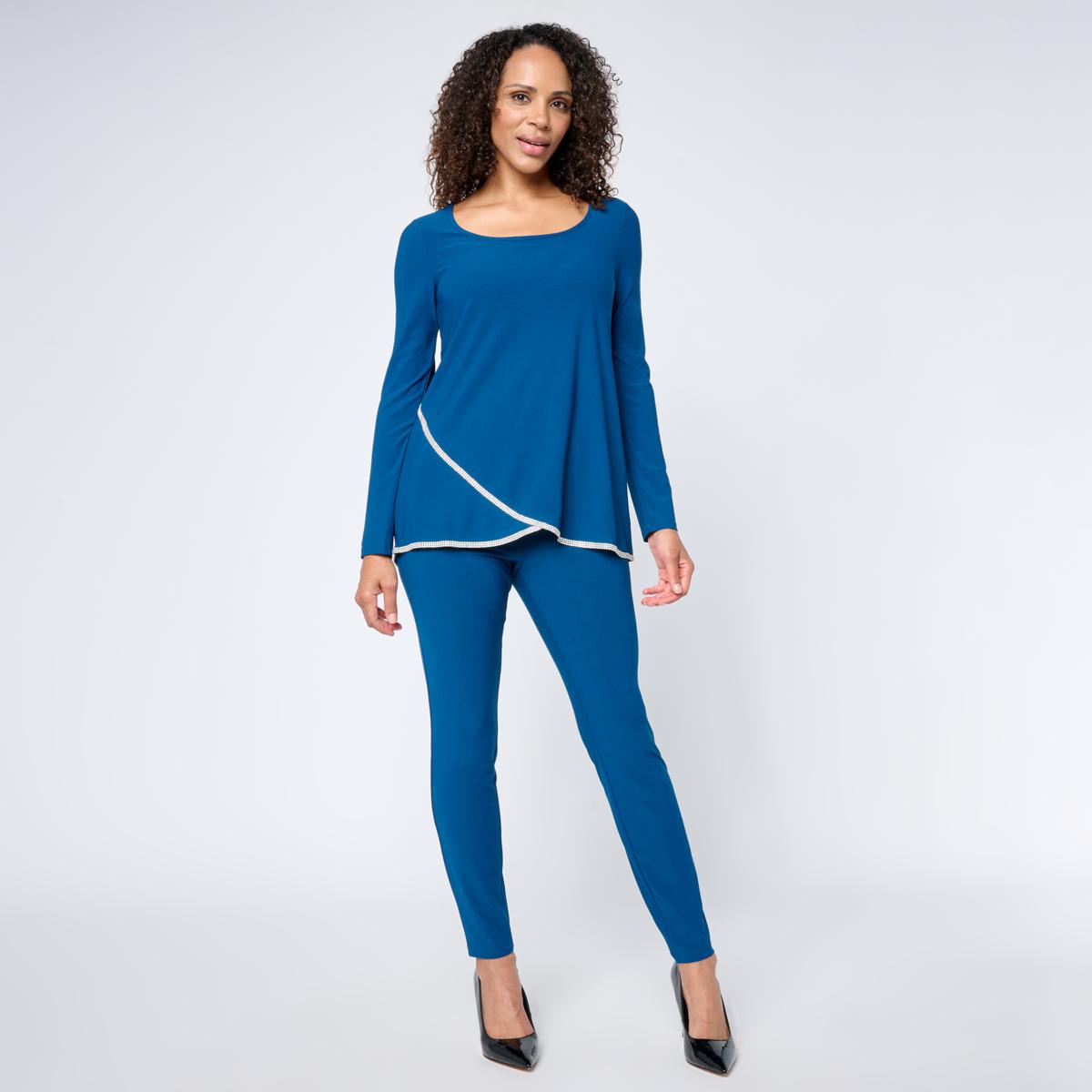 Nina Leonard Long Sleeve Tulip Hem Top and Pant 2-piece Set