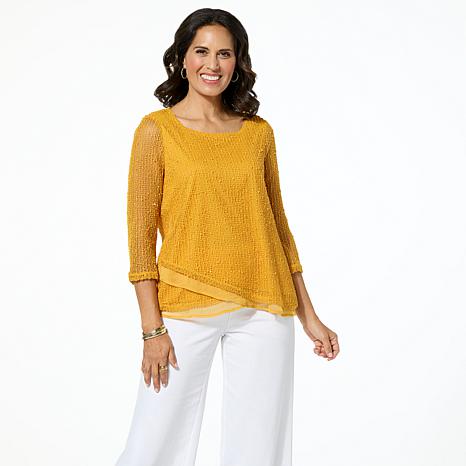 "As Is" Nina Leonard Novelty Sequin Open Knit Top