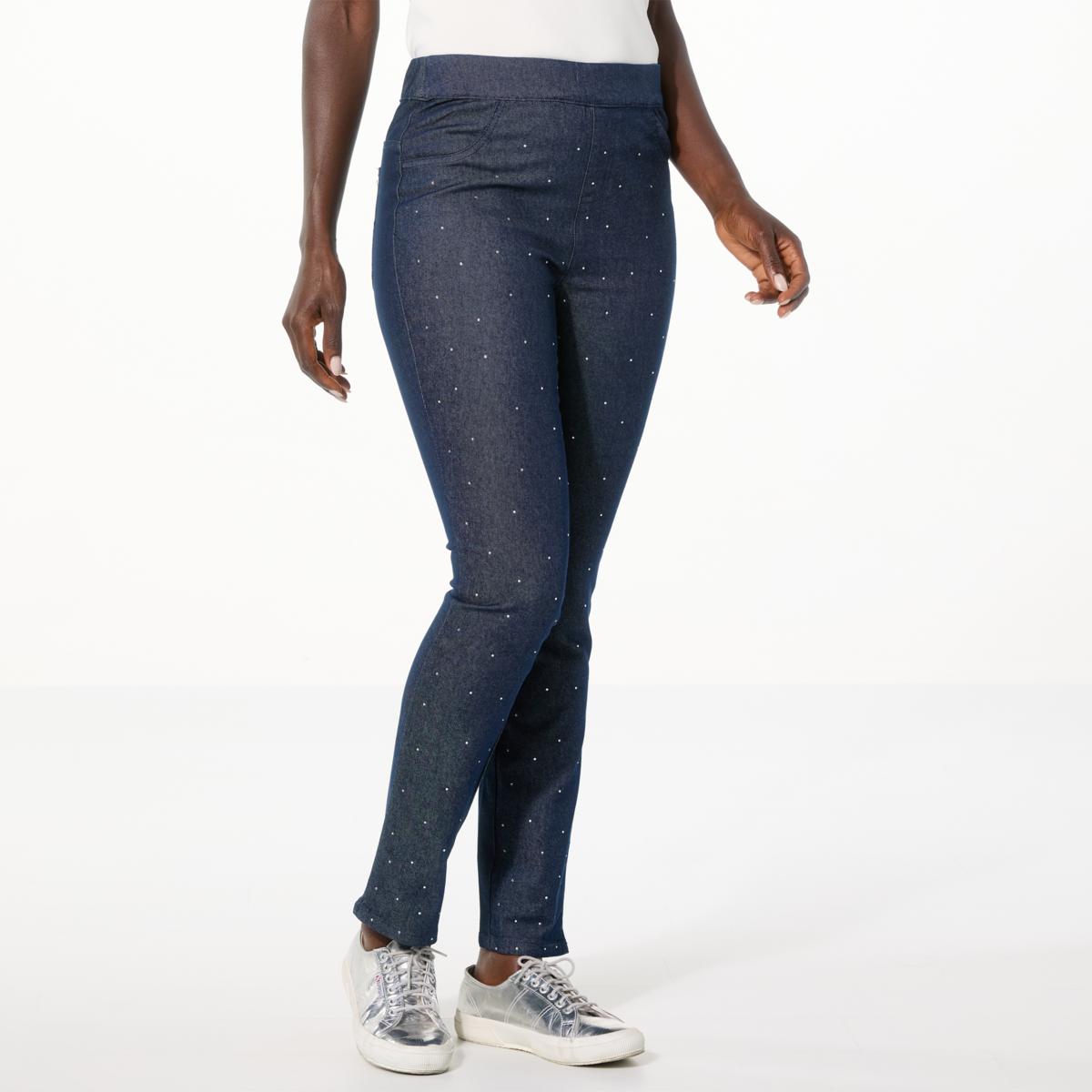 "As Is" Nina Leonard Rhinestone Slim Leg Pant