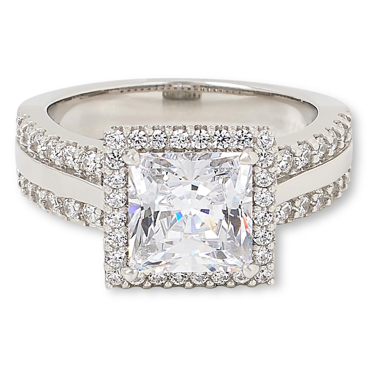 - Sterling Silver/Clear Ring: Clear Absolute Simulated Diamond oval stone; platinum-plated sterling silver