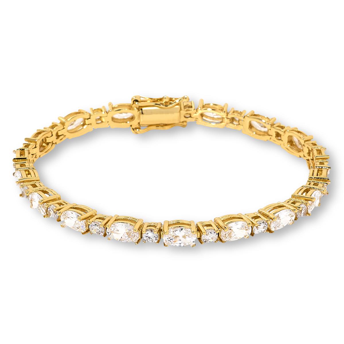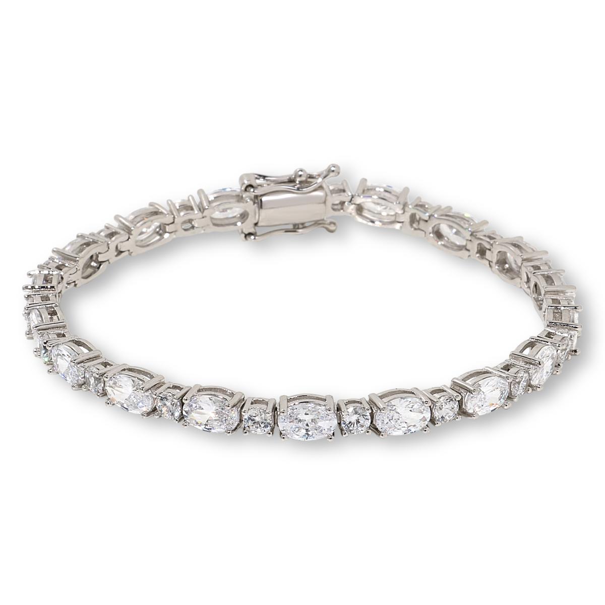 Oval and round simulated diamonds form this classic tennis bracelet. A "forever" look that's perfect for special days or any day, the line design is a must for any jewelry wardrobe.