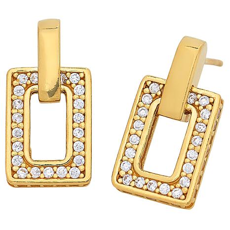 A bed of pavé stones shimmers on the open rectangle drop forming this link-style earring. It's a Katharine McPhee-inspired design that you can wear on evenings out and special events or break out any time, really.