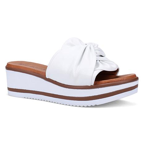 "As Is" Ron White Priccila Lightweight Leather Wedge Slide Sandal