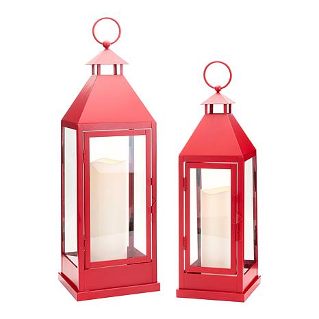 Unmatched 2-piece Set Flameless Lanterns with Holiday Bows