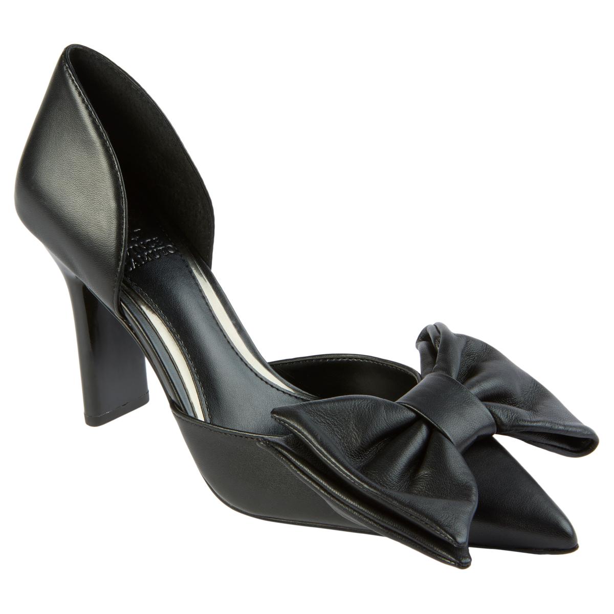Classic, elegant, flirty style all wrapped up in a bow. This leather dress pump from Vince Camuto features a padded footbed for increased comfort and works with everything from dresses to pencil skirts to skinny jeans.