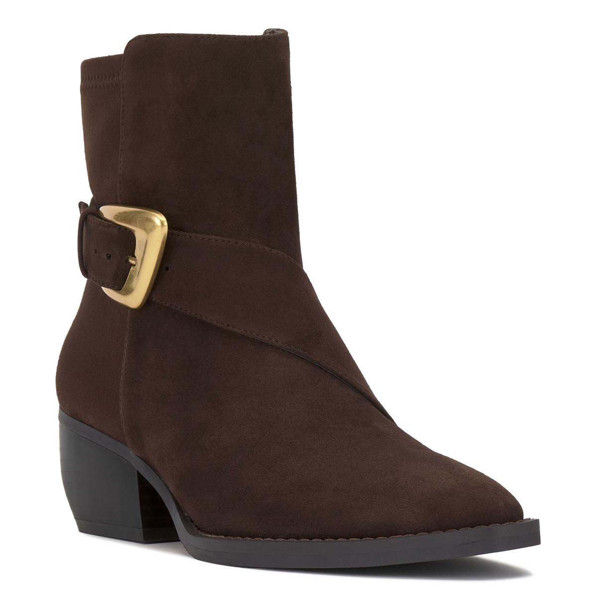 Elevate your style this season with a chic, short bootie from Vince Camuto. With its pointed toe, buckle detail and myriad of fashionable colors, the Philan boot looks just as good paired with tights and skirts, as it does with tailored trousers and jeans.