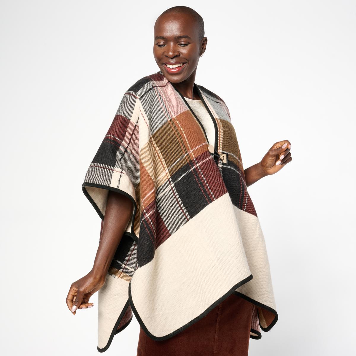 "As Is" Vince Camuto Reversible Woven Plaid Topper