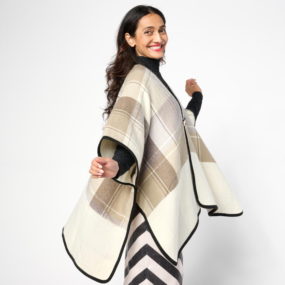 "As Is" Vince Camuto Reversible Woven Plaid Topper