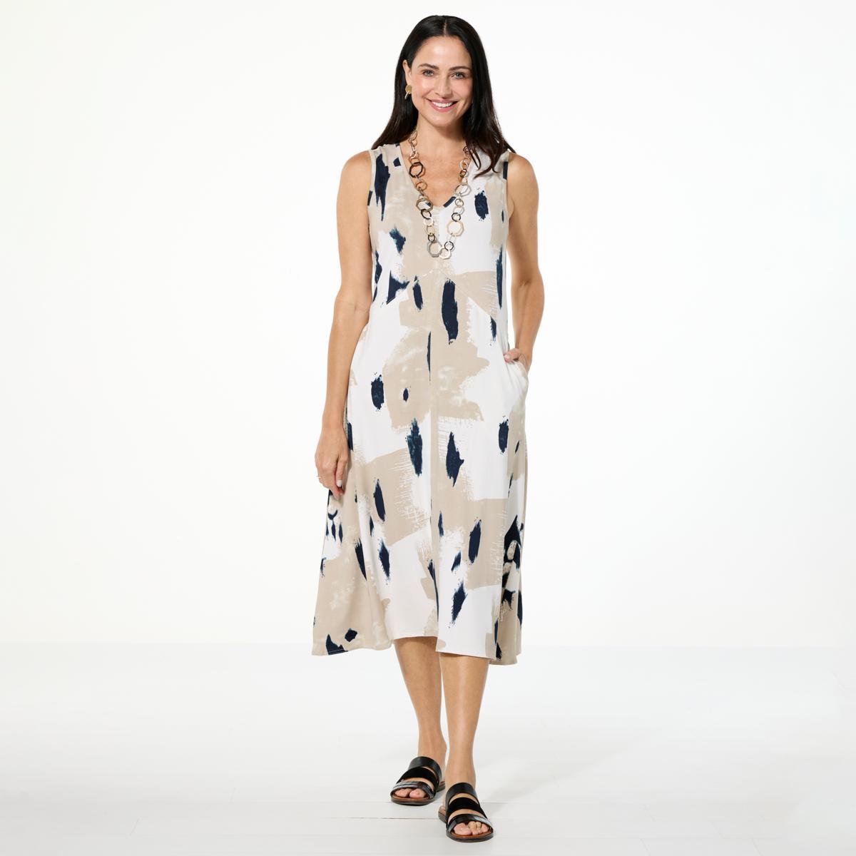 "As Is" WynneCollection Printed Stretch Rayon Dress with Seamed Detail