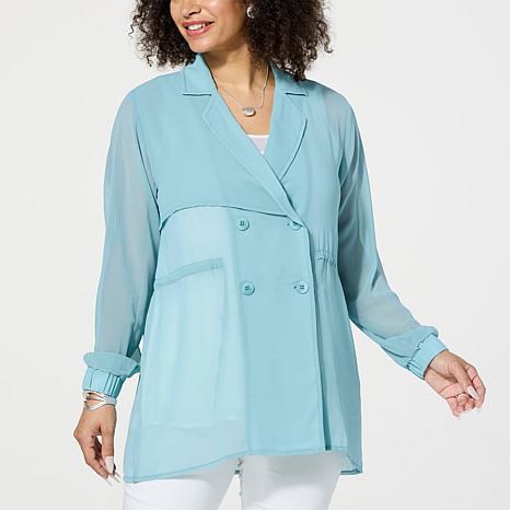 "As Is" WynneLayers Chiffon Double-Breasted Trench Jacket