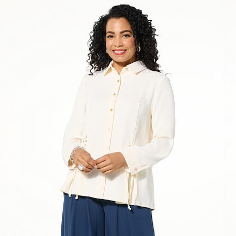 "As Is" WynneLayers Collared Woven Crepe Shirt with Lace-Up Detail