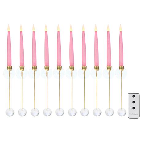 This 10-piece Flameless Tree Candle Set from august & leo will be the perfect addition to your home. Each candle features a beautiful hanging hook with a stunning crystal ball at the end to illuminate your space. Turn the lights on, off, or set a timer function with the included remote. Suction cups are also included to transform each tree candle holder into a gorgeous window candle. These flameless candles are a wonderfully elegant and chic lighting option this holiday season.