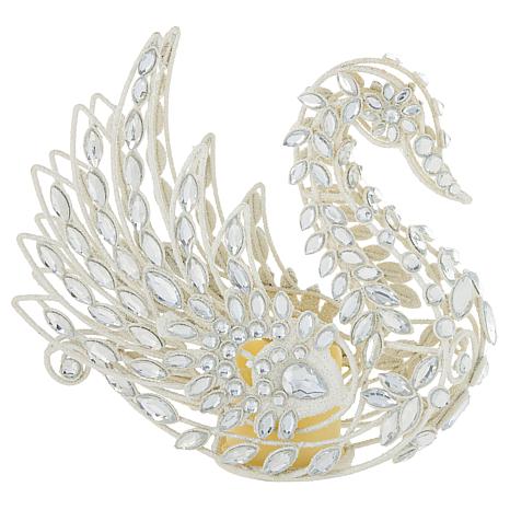 august & leo 9" Jeweled Glitter Swan Décor with Flameless Candle