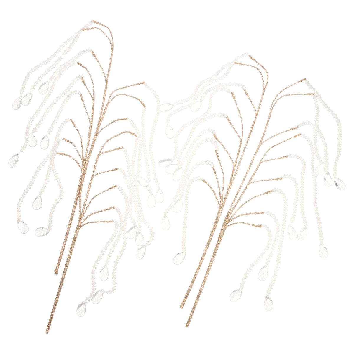 - 4 Decorative Glitter Faux Branches with Cascading Acrylic Jewels