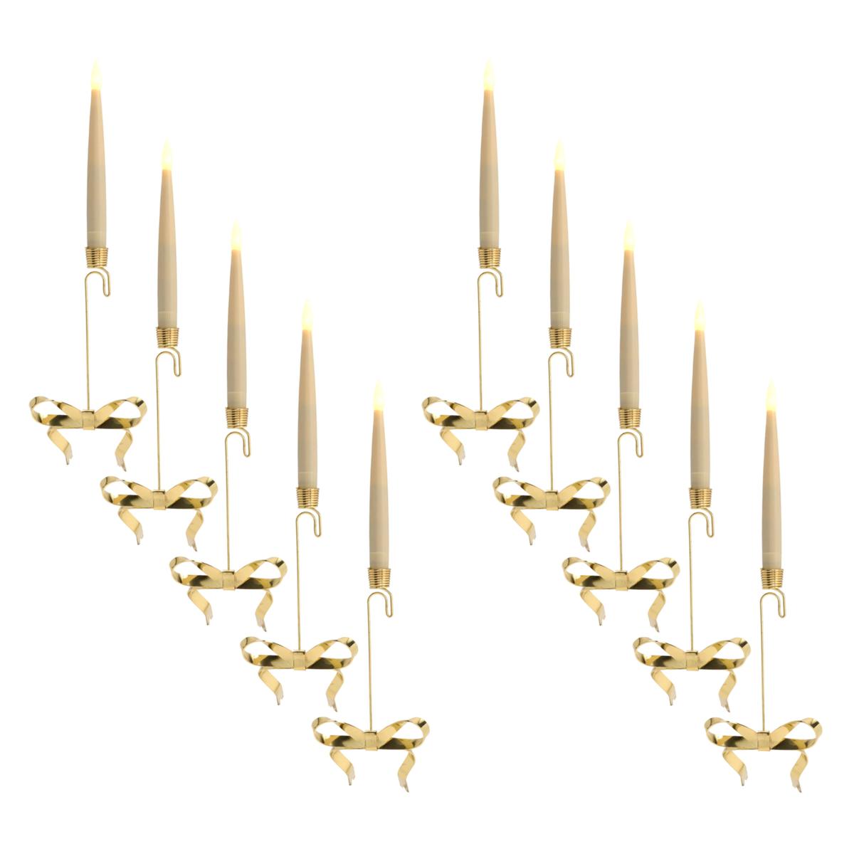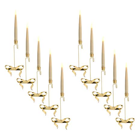 Transform your holiday decor with the enchanting august & leo Flameless Tree & Window Candles Set of 10, a hassle-free way to add warm, flickering charm to your Christmas tree or windows without the worry of real flames. Each candle features a delicate hanging hook adorned with a festive bow, making it easy to drape them gracefully across branches or along your sill for a cozy, magical glow. With a convenient remote, you can effortlessly switch them on/off or set the built-in timer (6 hours on, 18 hours off) to automate your holiday lighting, so they’ll twinkle reliably day after day. These realistic battery-operated candles (each requiring 1xAAA battery, not included) shine for 263 hours, offering a long-lasting, worry-free ambiance in a compact design (6" tall, 5/8" diameter) that’s lightweight yet stunning—perfect for creating that dreamy, festive atmosphere all season long.