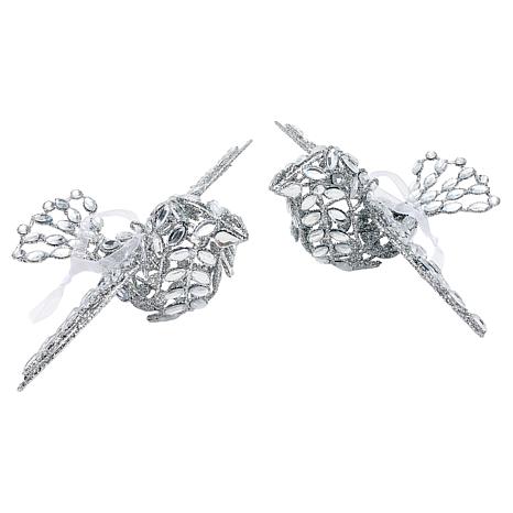 Add a touch of holiday magic with the August & Leo Jeweled Turtle Doves Set of 2, a pair of dazzling festive ornaments that bring sparkle and elegance to your Christmas decor. Each handmade dove, measuring approximately 7.75" x 6.25" x 3" and weighing just 0.39 lbs, is adorned with 123 shimmering acrylic jewels, catching the light beautifully in champagne or silver—your choice of these sophisticated finishes. Featuring an elegant attached ribbon, these graceful birds are ready to perch on your tree, drape over a garland, or brighten any cozy corner of your home. Presented in a charming gift box, this set makes a heartfelt present for someone special, blending timeless charm with a festive glow.
