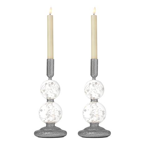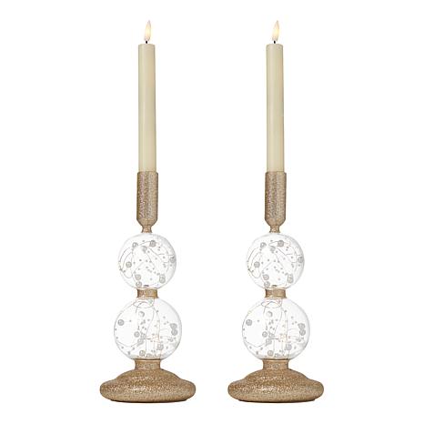 august & leo Set of 2 LED Glitter Pedestals with LED Candles