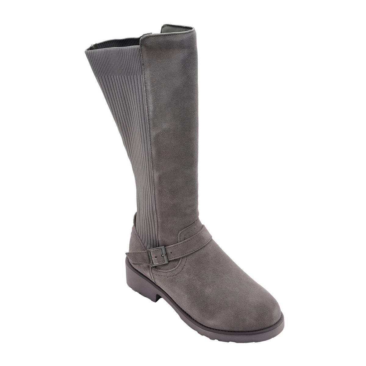 Step into cozy style with these tall suede boots featuring plush sherpa fleece lining and a convenient zipper for easy on and off. The shaft is a combination suede and knit, which provides a snug, sexy fit. The lug rubber outsole offers reliable traction, making them perfect for braving the elements on those chilly winter days when you want warmth without sacrificing fashion.