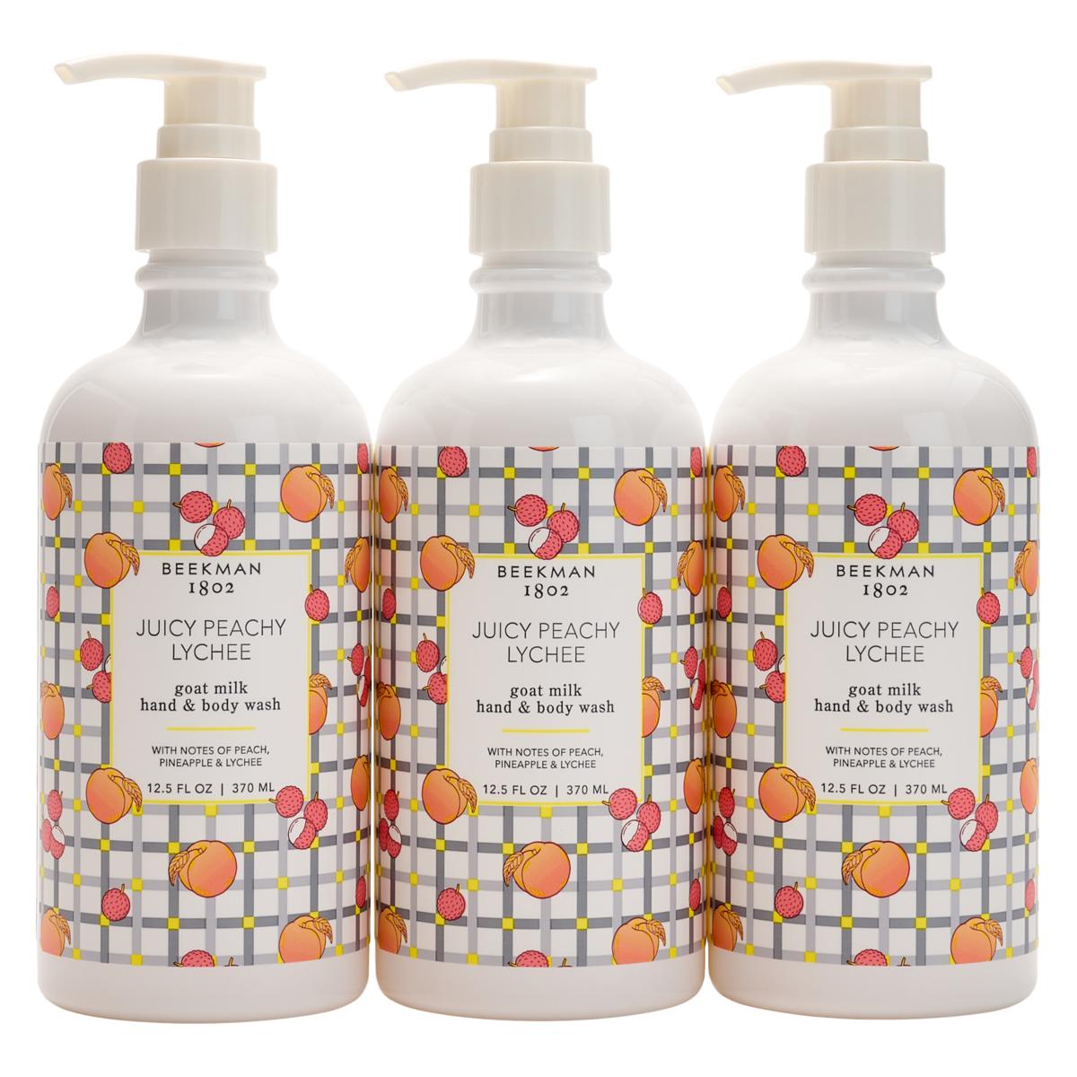 (3) 12.5 fl oz Beekman 1802 Goat Milk Hand & Body Wash, Peach Lychee