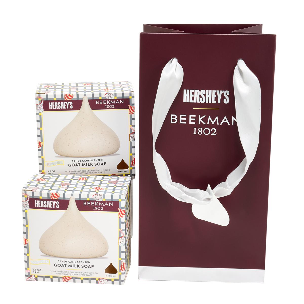 The greatest goat milk body treatment you love meets the G.O.A.T holiday treat with the Beekman 1802 x Hershey's collaboration. This gift set brings home two Hershey's Kisses-shaped, Beekman 1802 goat milk gifts soaps in the Candy Cane fragrance -- along with a Beekman 1802 x Hershey's gift bag, to make gifting effortless, Kind, and of course sweet.
