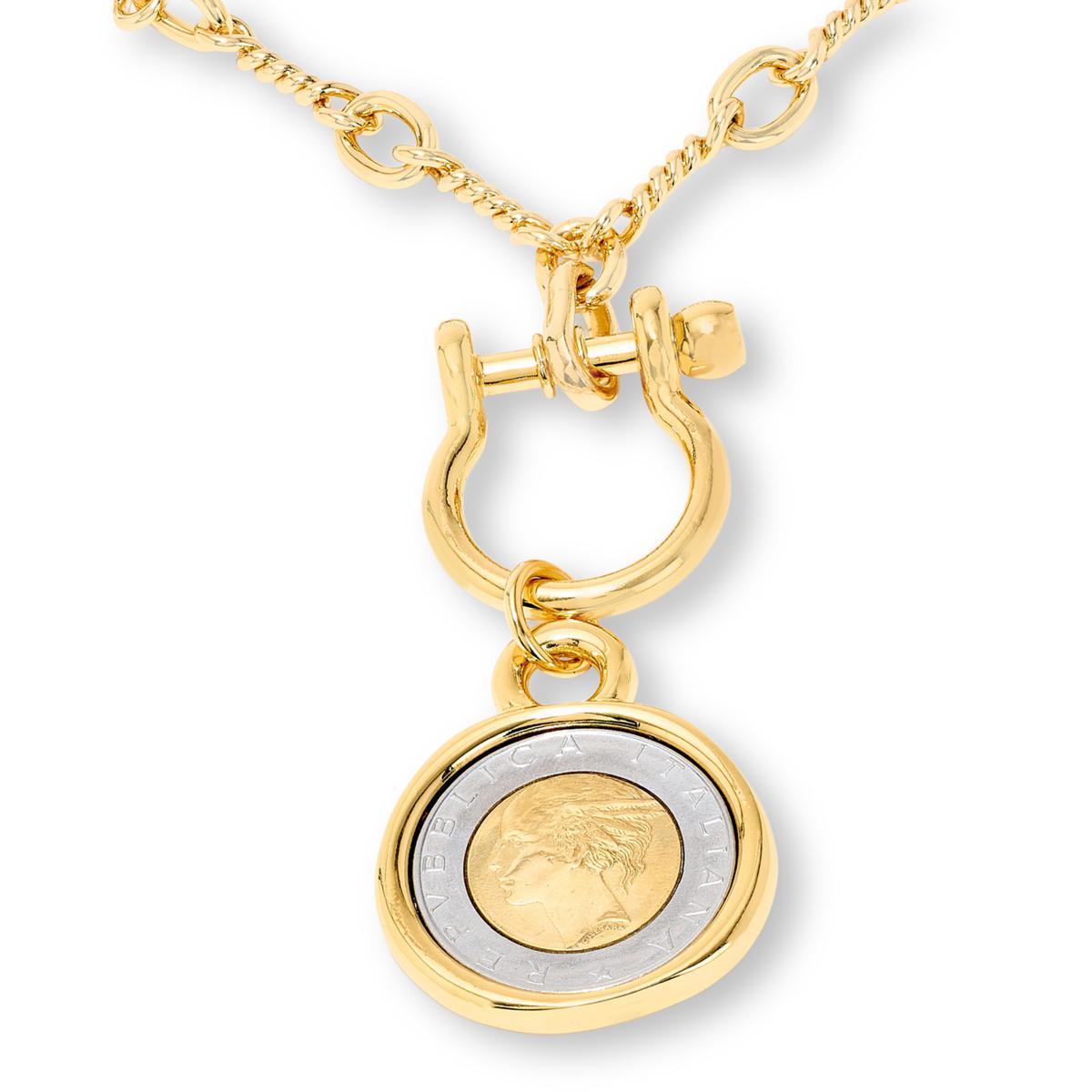 Bellezza Bronze 500 Lira Coin Horseshoe Design Drop 18" Necklace