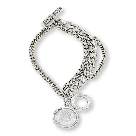 You get a lovely layered look in one chic piece with this multi-chain bracelet from Bellezza Bronze. The unique piece features a beautiful, single charm fashioned from an authentic Italian Lira and an oversized, decorative toggle. Slip it on anytime to instantly elevate your style game!