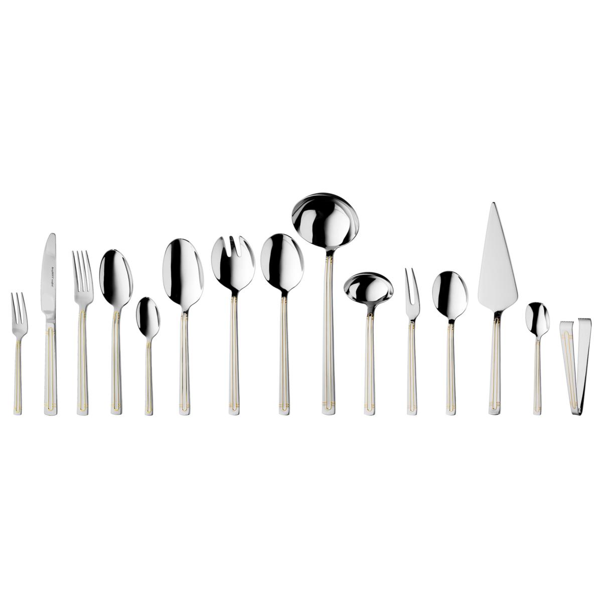 Shine like a star when you put the Heritage cutlery on your dinner table. This set shows stunning detail and has gold-colored linings on both front and back side of the handle that immediately give the flatware a refined look and feel. The handles’ rectangular surface creates a harmonious balance with the cutlery’s curved edges. Combining a graceful outline with a lightweight comfortable grip, designer Ralph Kraemer conjures up an elegance that turns this set into a timeless gem.