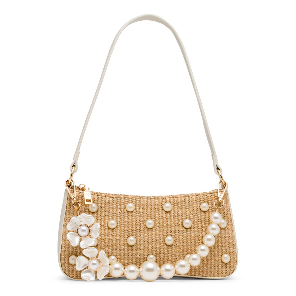 Betsey Johnson Raffia Faux Pearl Shoulder Bag