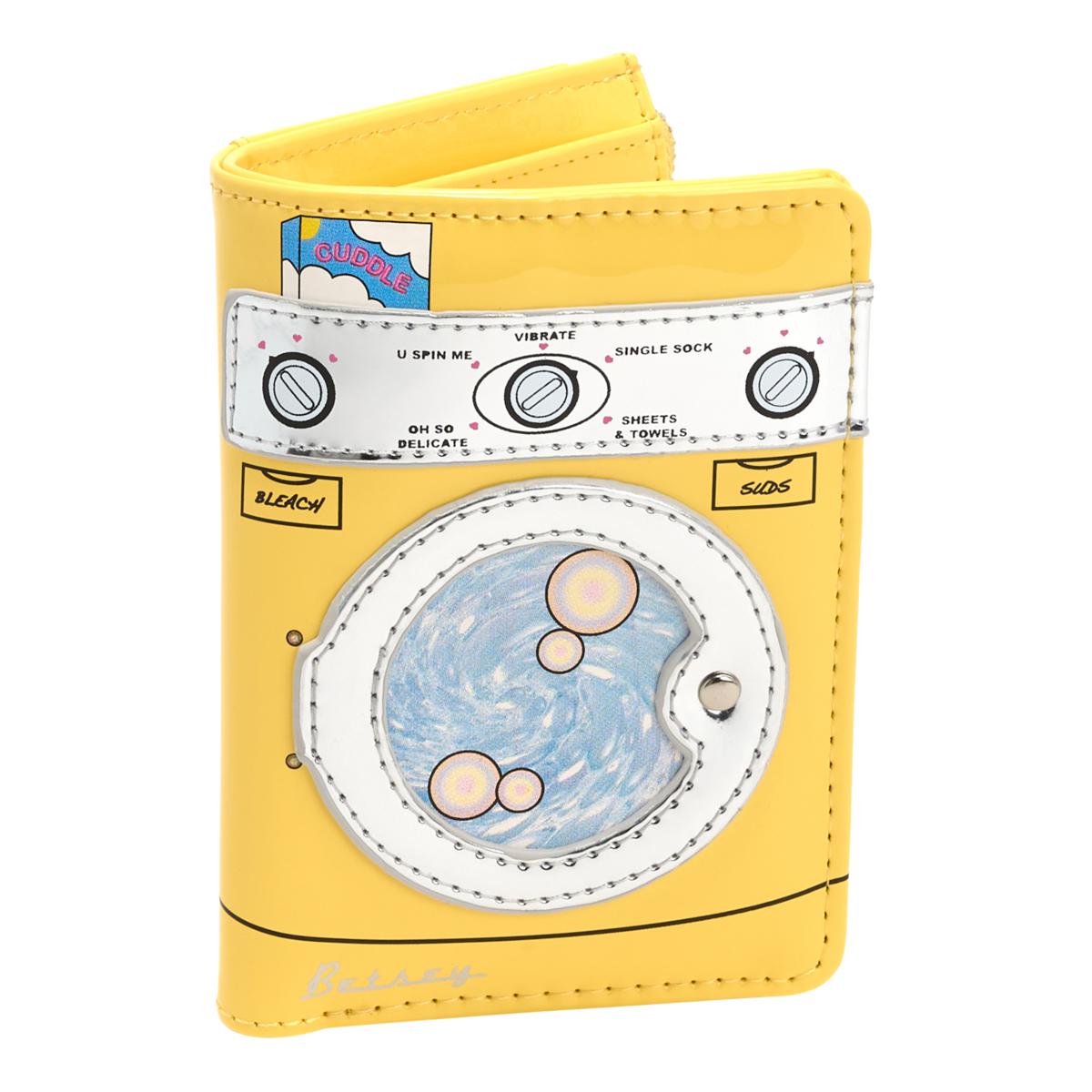 This playful bifold wallet brings a splash of fun with its cute washing machine details. Perfectly sized to keep your essentials organized, it features multiple card slots and a secure snap closure. Slip it into your favorite bag or carry it solo for a chic, effortless look.