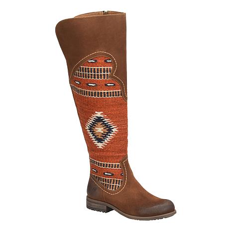 Step into artisan-crafted style with these bold over-the-knee boots featuring soft distressed leather and a cozy woven wool blanket upper. The combination of micro suede and leather linings ensures comfort, while the lightweight rubber outsole offers traction for all-day wear. Perfect for adding a vibrant touch to your fall wardrobe, these boots bring warmth and style together effortlessly.