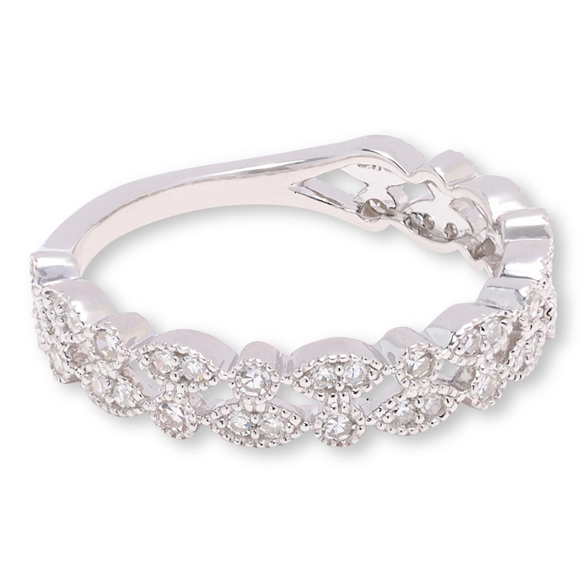 This sophisticated band ring dazzles with a marquise and round-shaped design fully paved with brilliant round-cut stones. Its vintage-inspired lace look delivers maximum sparkle, making it a perfect statement piece or a dazzling stackable addition to your collection. Wear it solo or layer it up for a look that captures timeless elegance with a modern twist.