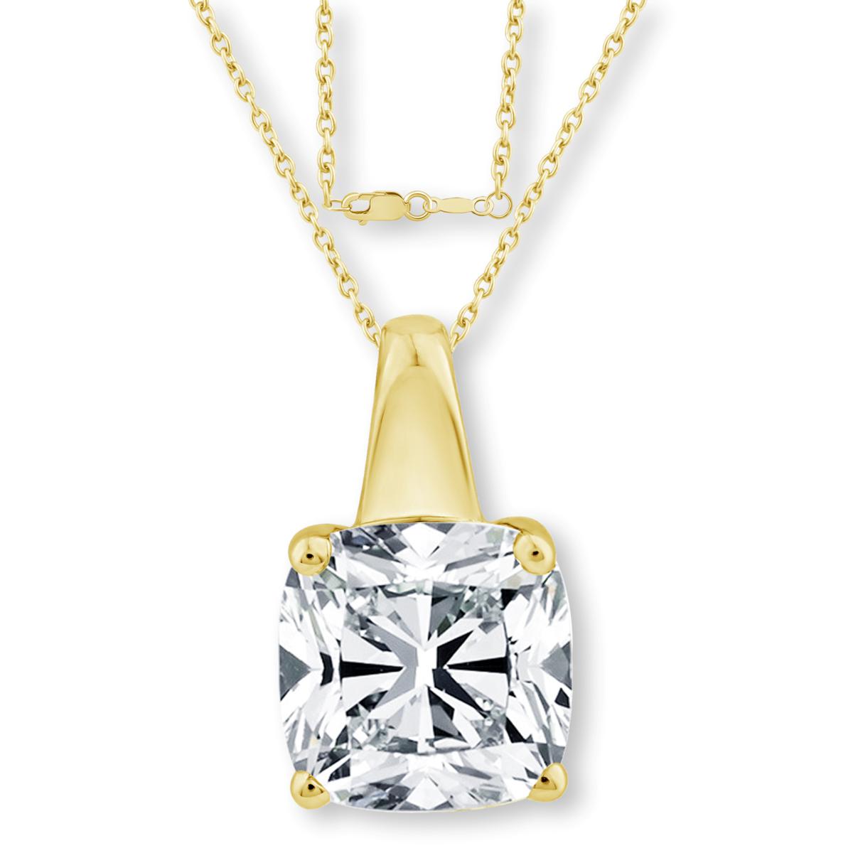 Bright Halo Lab Grown Diamonds 14K Gold 1.5ct Cushion Pendant w/Chain