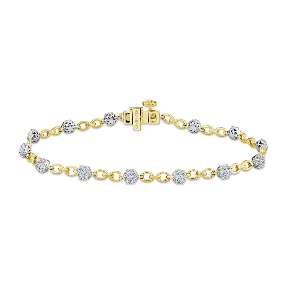 - Sterling silver line bracelet design has round, lab grown diamonds set in hexagonal stations alternating with 2 chain links