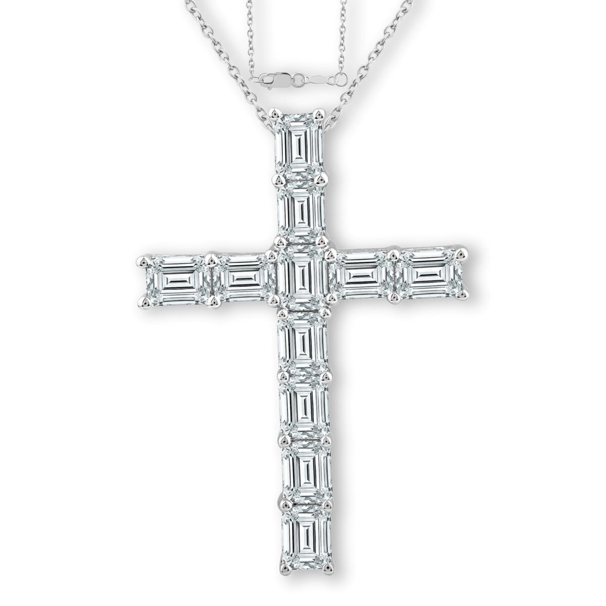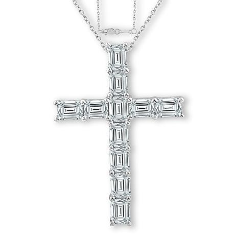 Baguette-cut lab grown white diamonds fall in line to give this cross-shaped necklace drop the kind of chic, sophisticated sparkle you love.