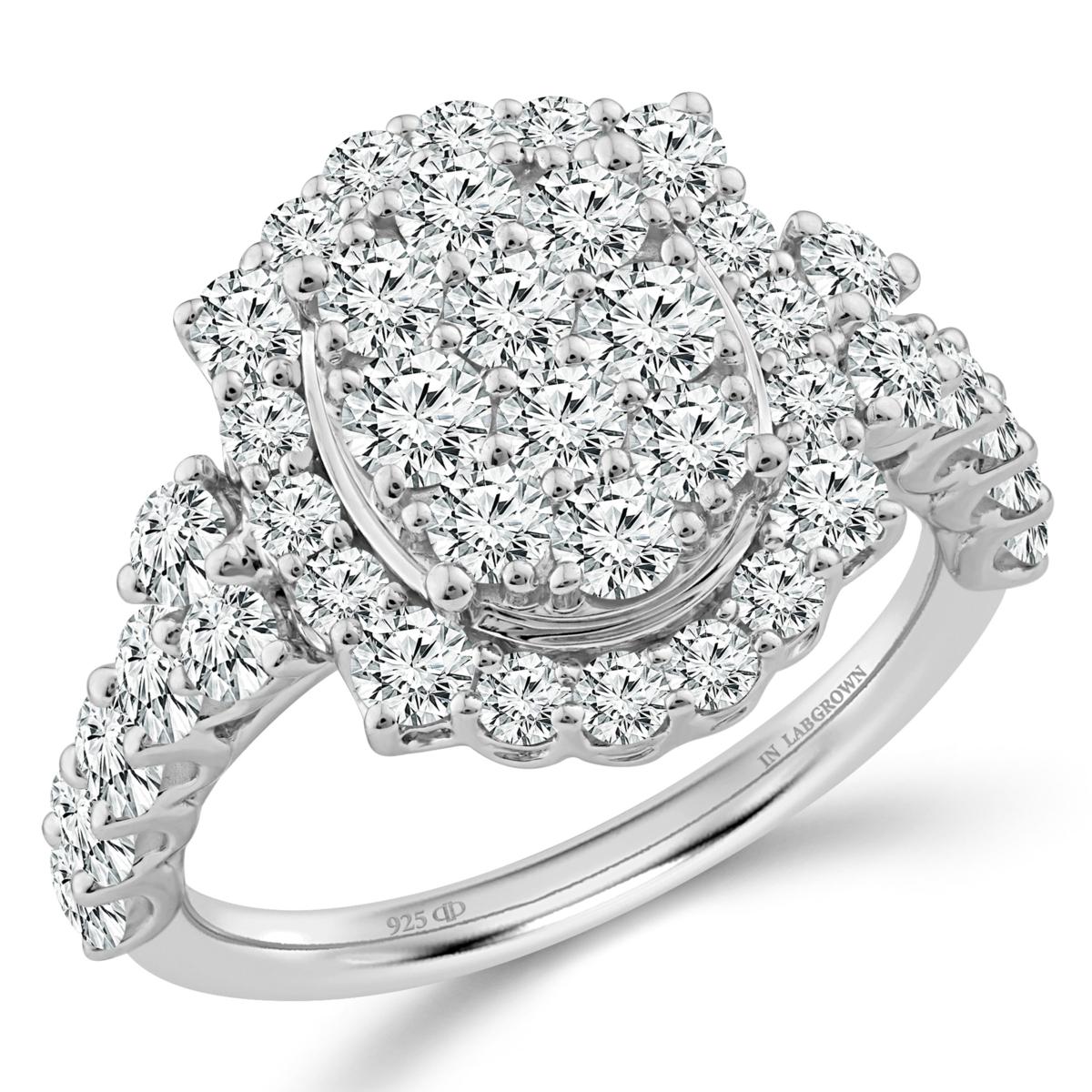Bright Halo Lab Grown Diamonds 2ctw Oval Halo Cluster Ring