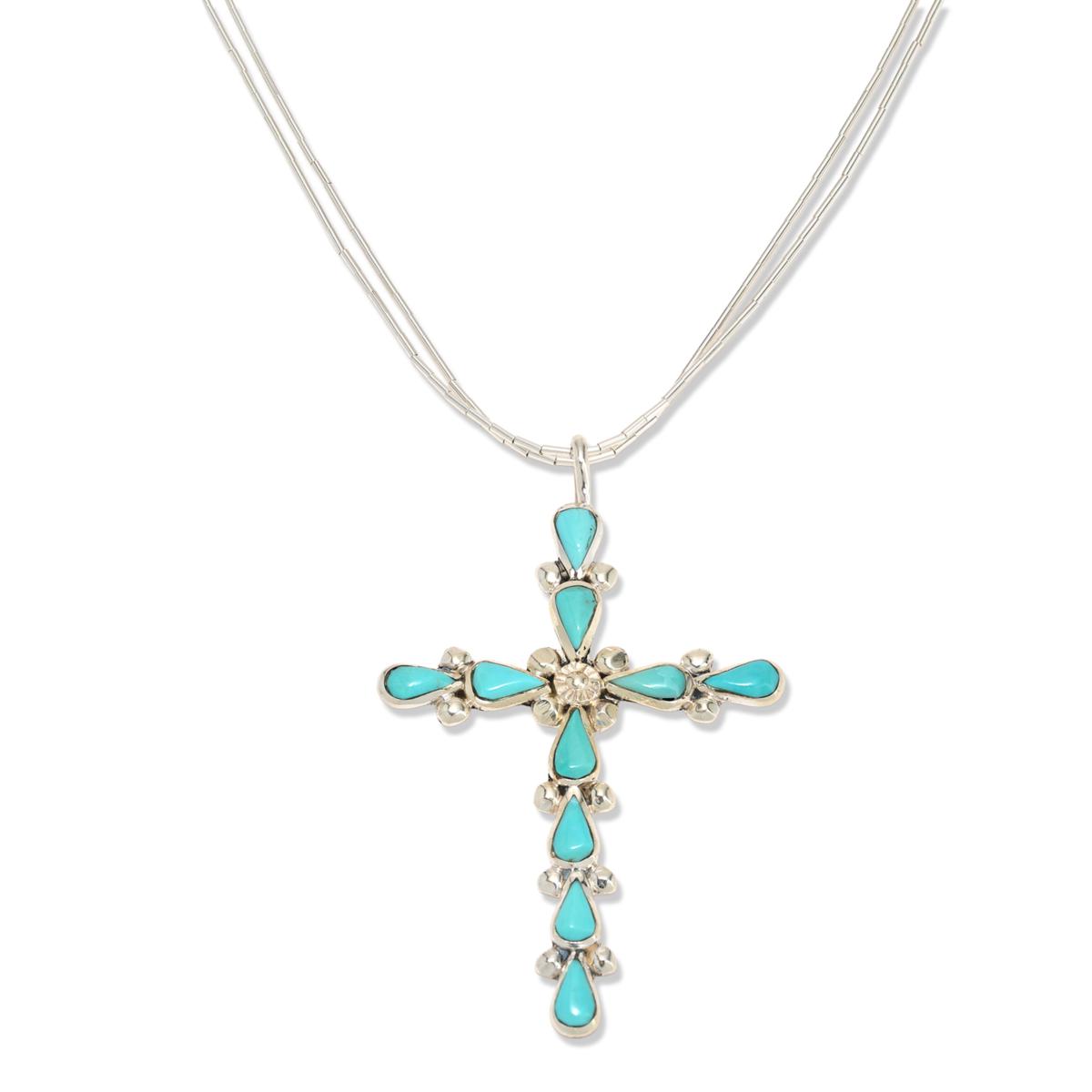 Celebrate authentic Native American artistry with this handcrafted cross pendant featuring vibrant turquoise or shell stones. Perfect for adding a meaningful touch to your everyday look or special occasions, this piece blends tradition with timeless style. Designed and crafted in the USA, it honors the rich heritage of Navajo and Zuni artisans.