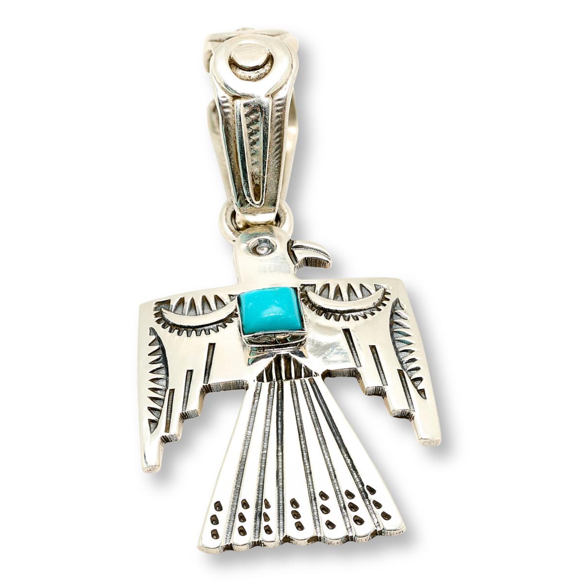 Chaco Canyon Sterling Silver Campitos Turquoise Eagle Pendant